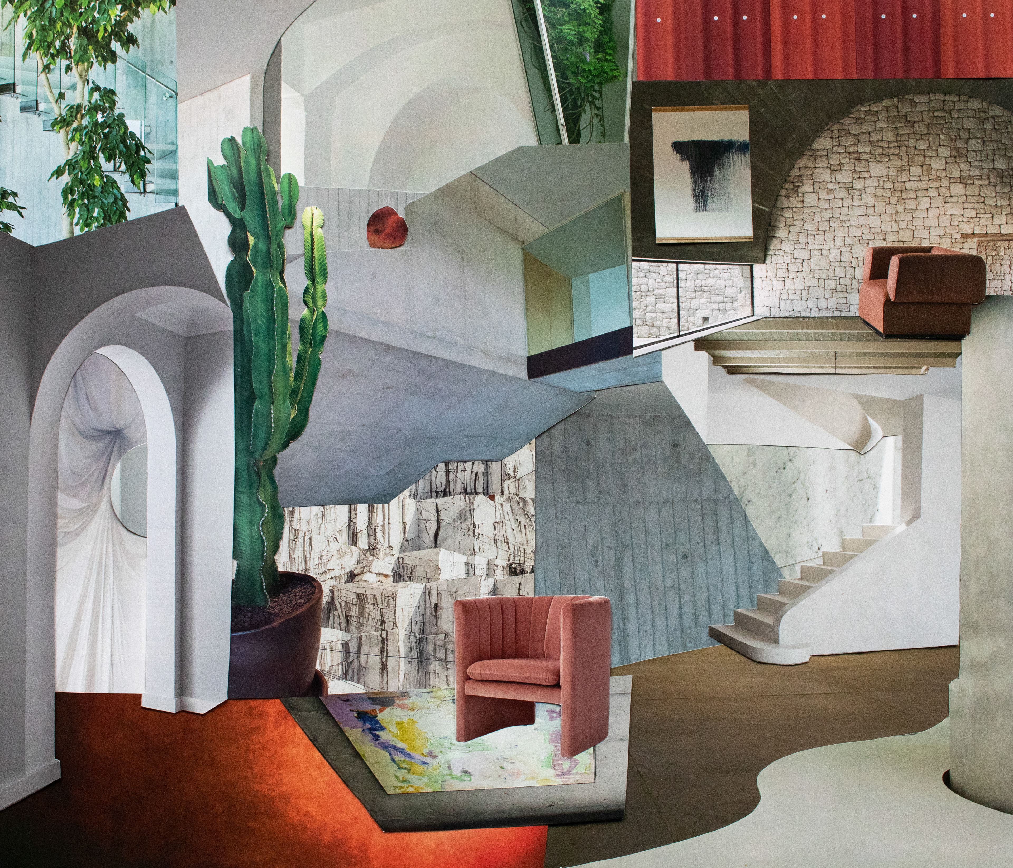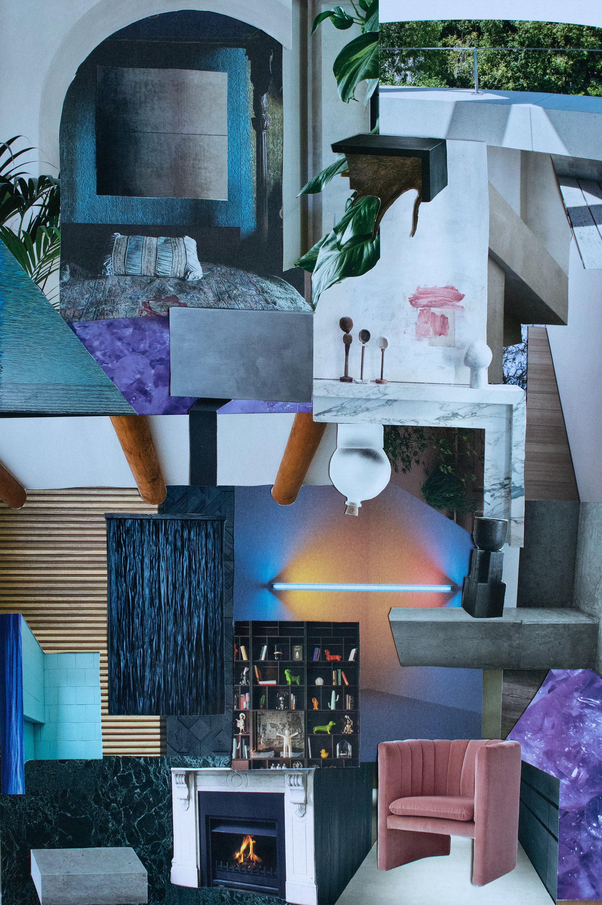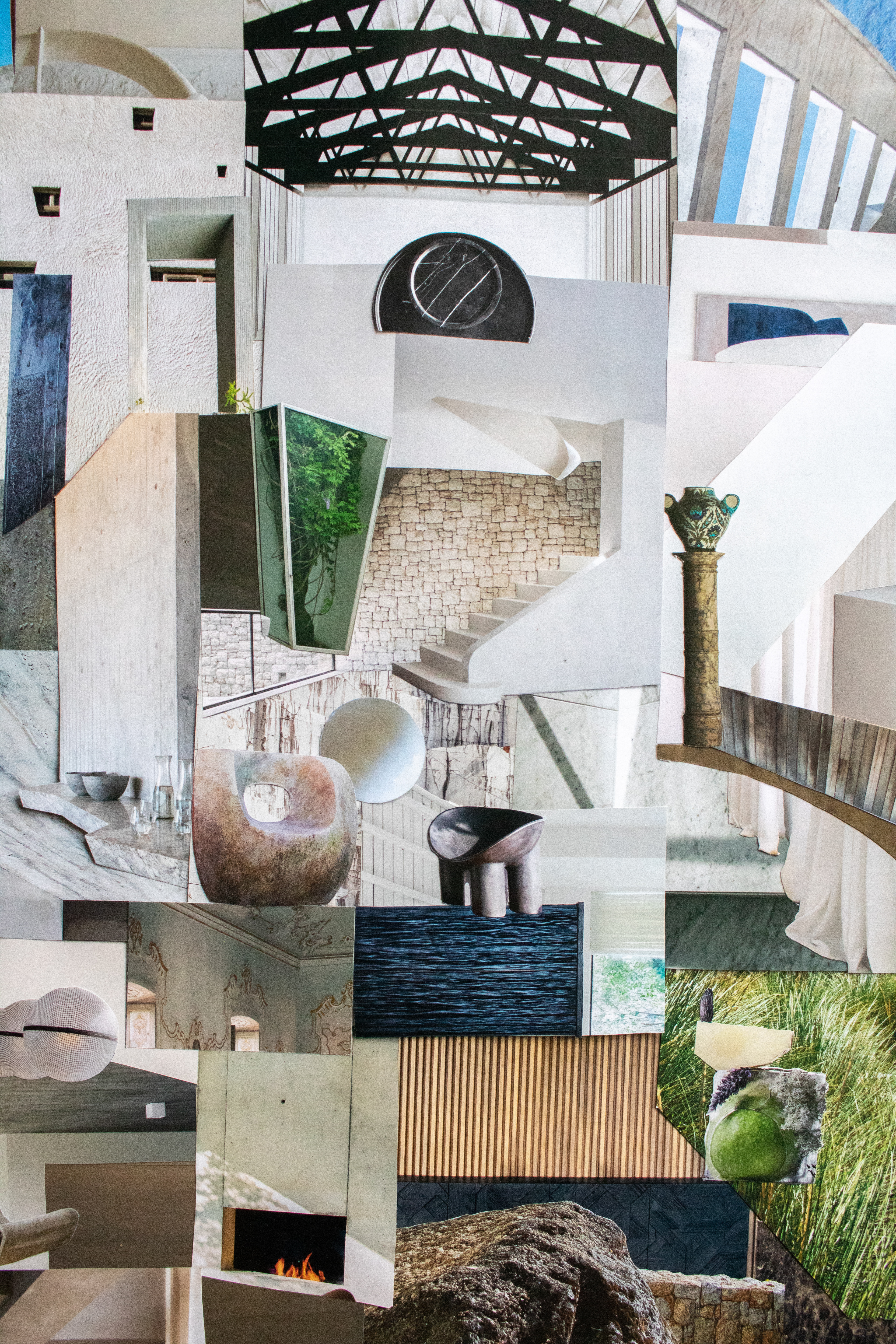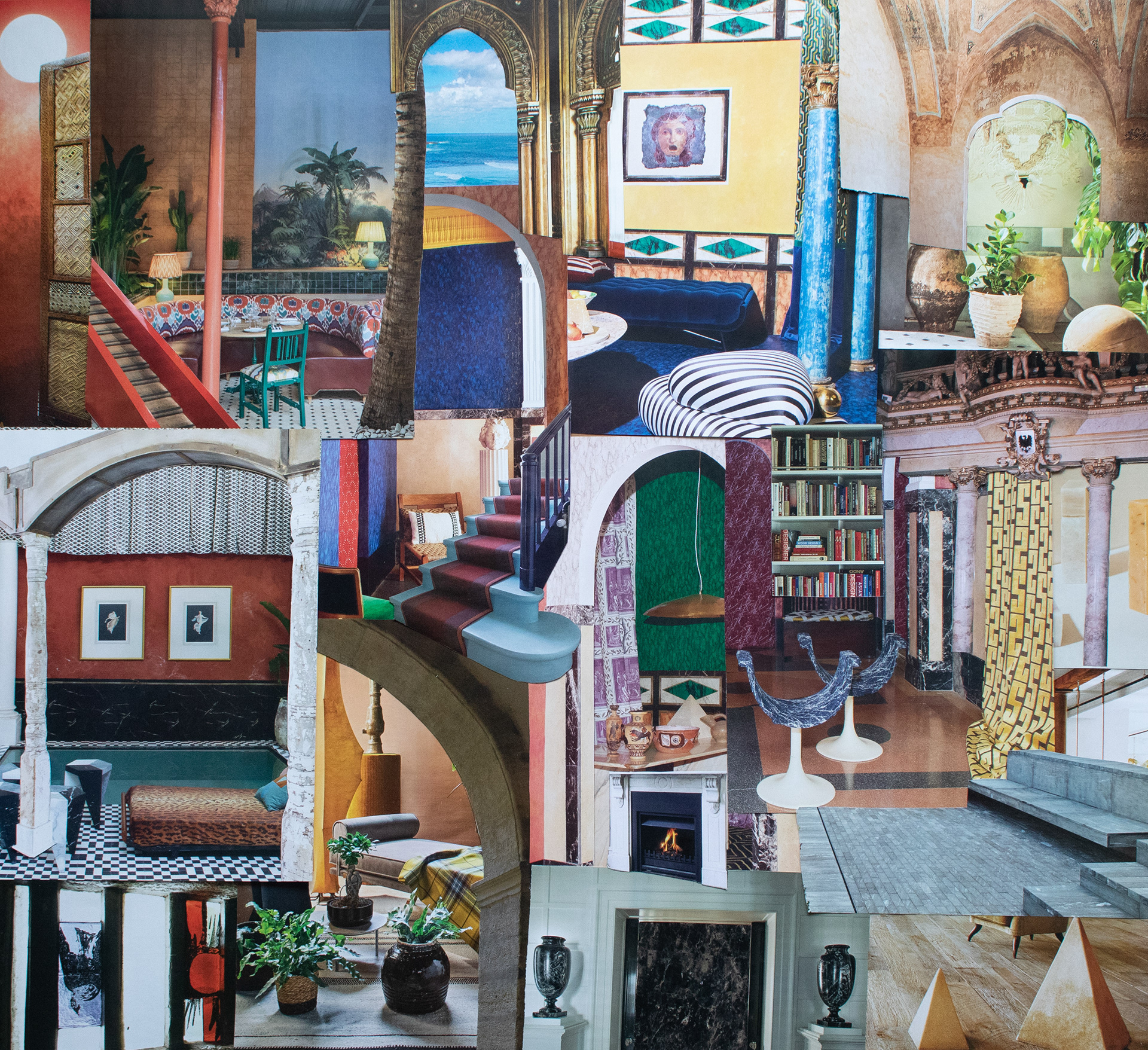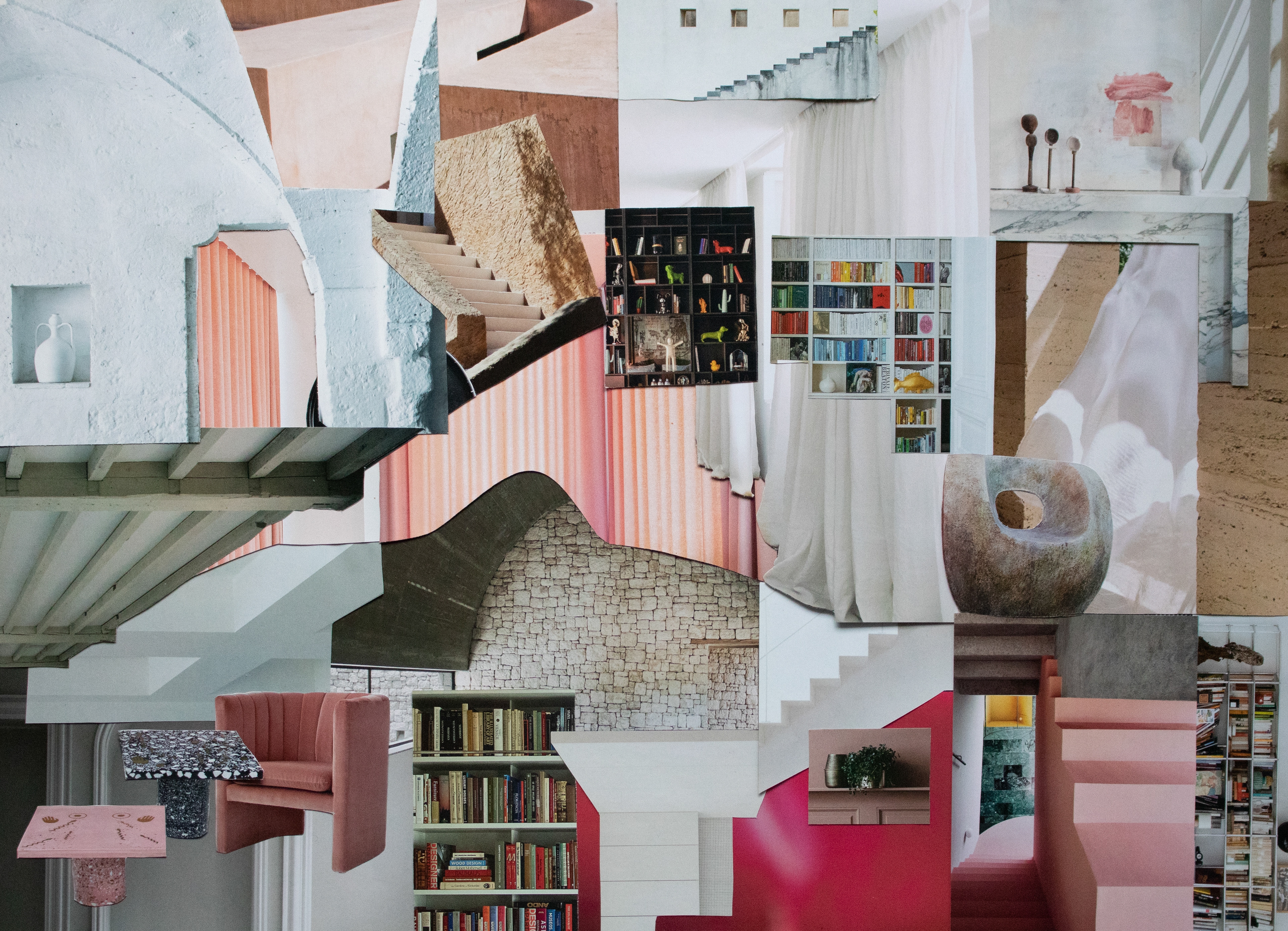 For the clippings of the different Life Style, Architecture and Design magazines I pay attention to the quality of the photos and the quality of the printed paper and motifs that have a life of their own regardless of their context. A staircase may interest me not because of its function to climb, but because of its geometry, for example. To select the cuttings I let myself be guided by an aesthetic intuition regarding colours and shapes. At that moment I do not have the final image defined yet, but I put the clippings in a file that will serve me as a quarry for the next phases of work. It is an archive where my fantasies and aesthetic concerns lie.